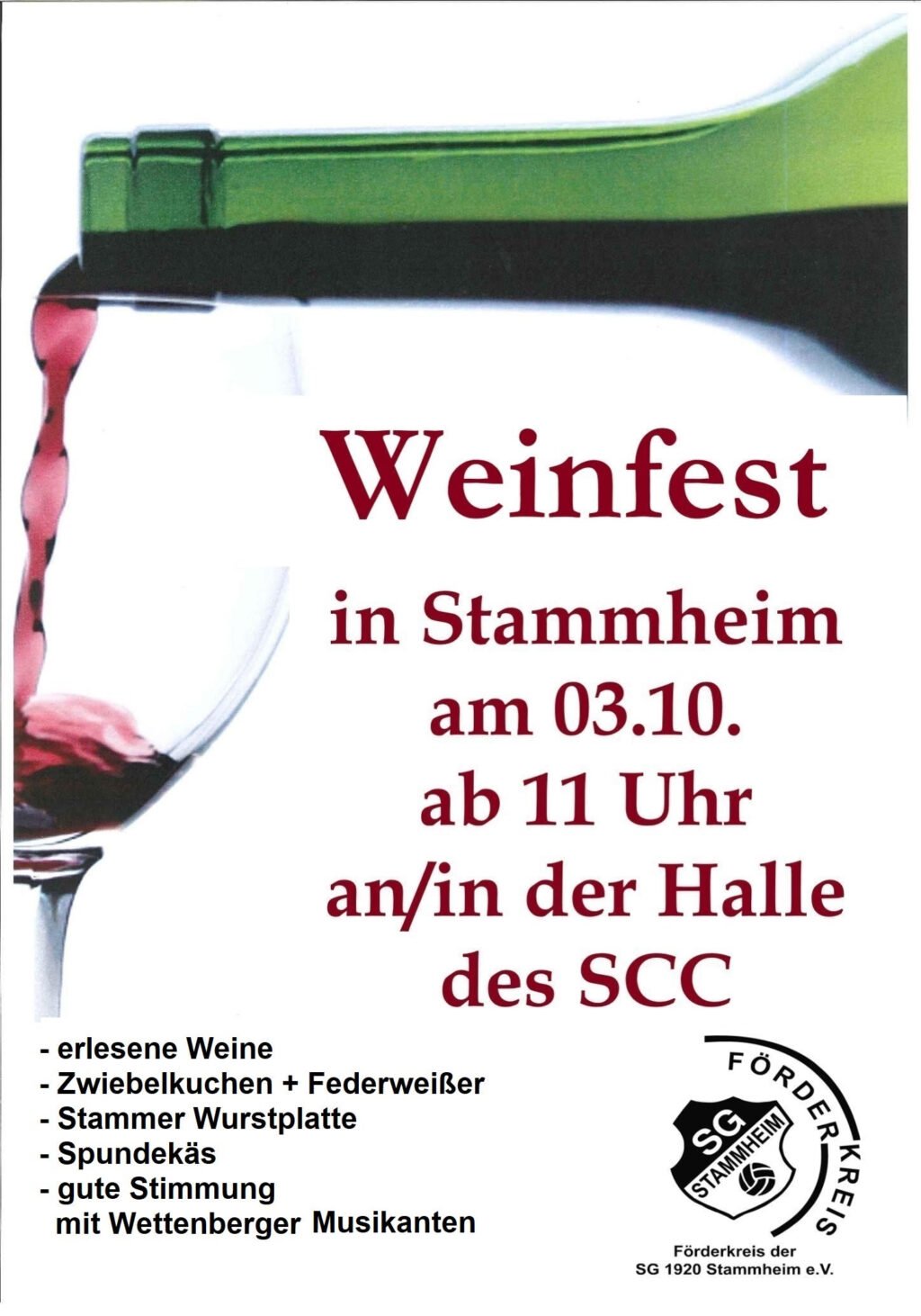 Link zum Flyer und Veranstaltung -> 9. Weinfest des Förderkreises der SG 1920 Stammheim in der „Halle des SCC“